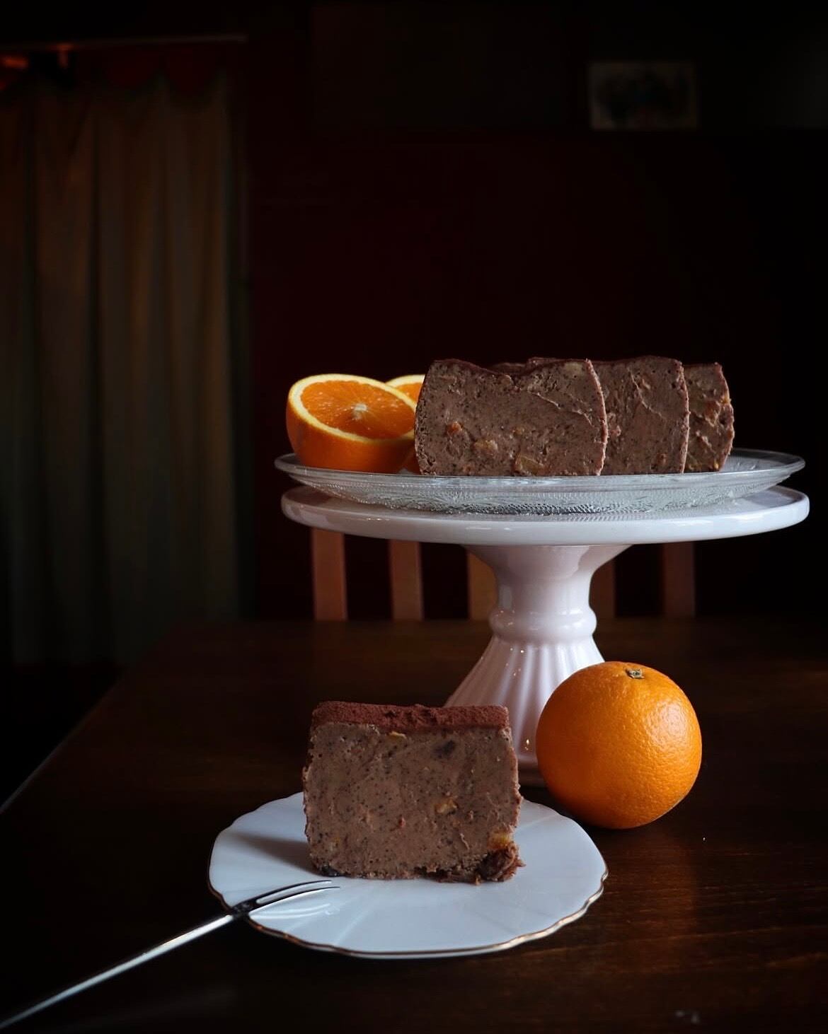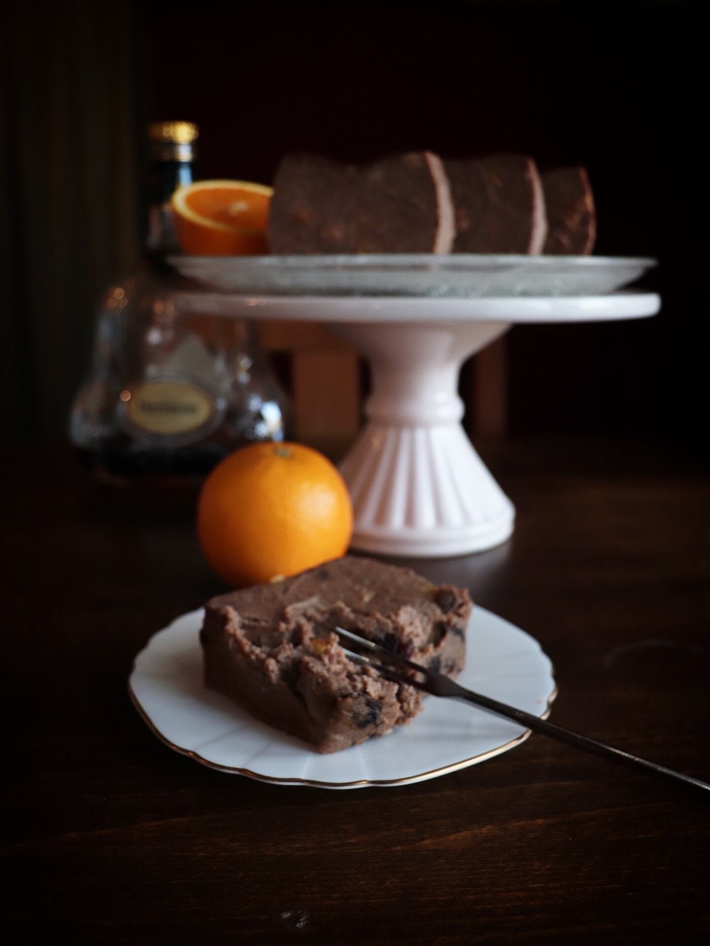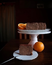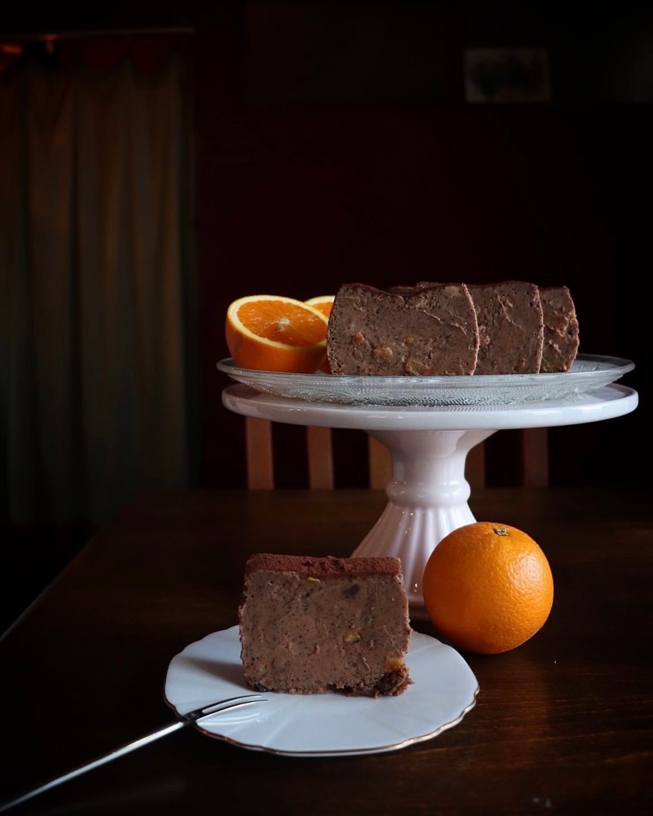 (カカオ、有機カカオニブ、フレッシュオレンジ果汁、オレンジピールのショコラチーズケーキ)